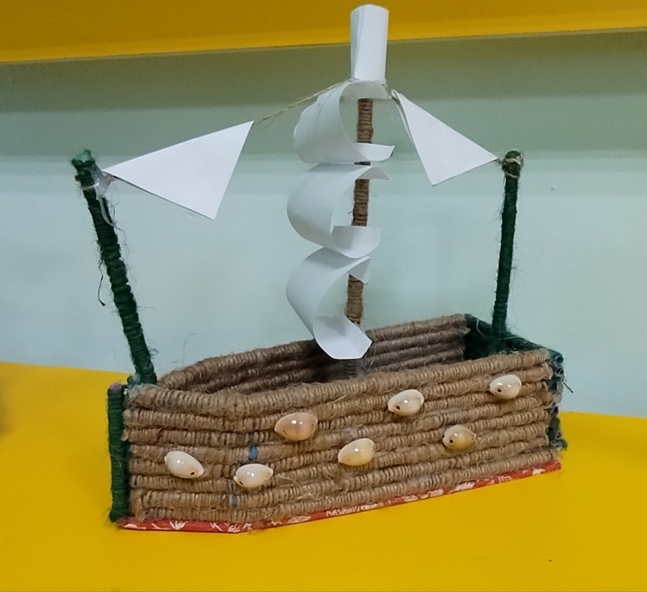 Поделка выполнена из картона,шпагата, коктельных трубочек