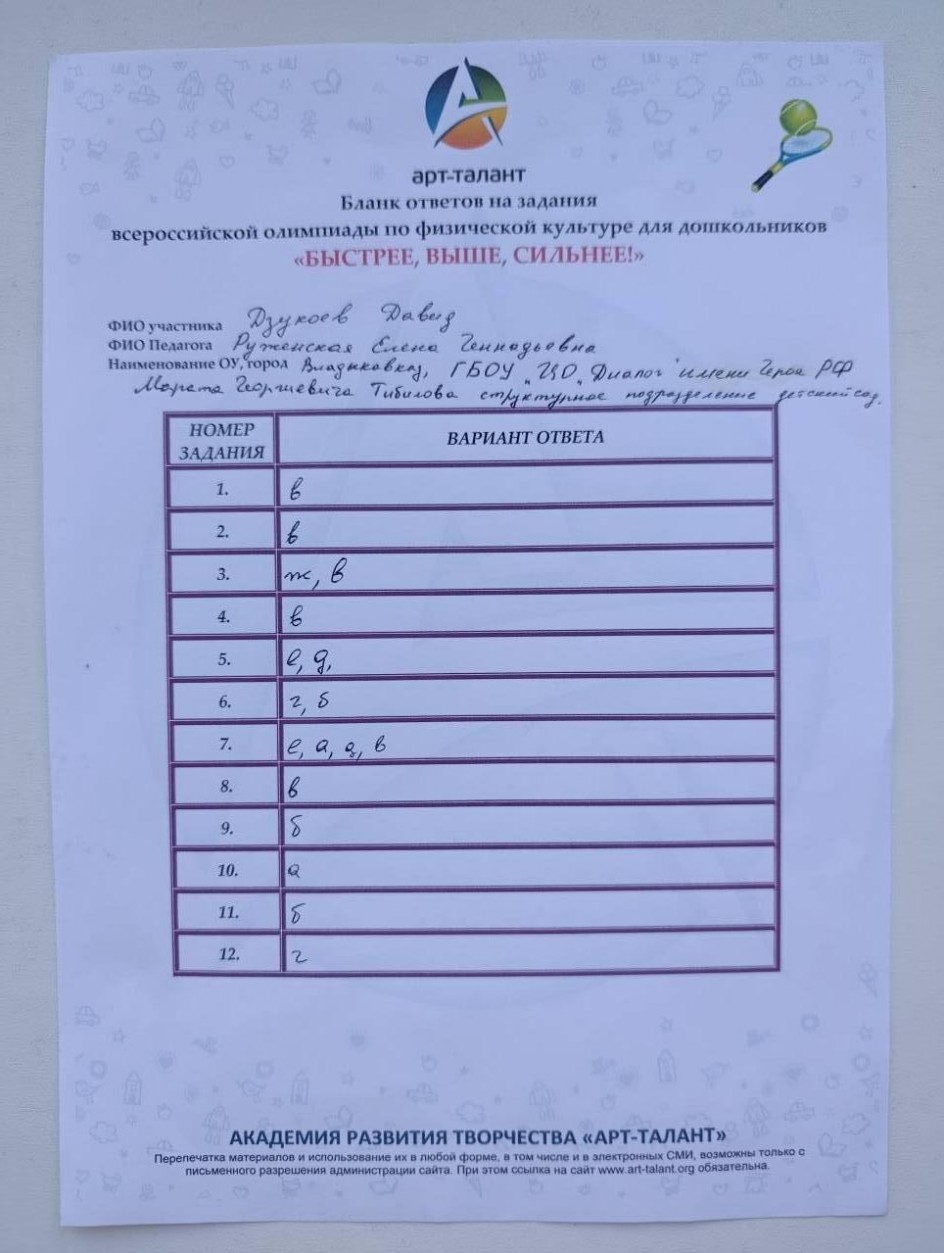 Дзукоев Давид, ГБОУ "ЦЕНТР ОБРАЗОВАНИЯ" ДИАЛОГ" имени героя РФ Марата Георгиевича Тибиева структурное подразделение детский сад структурное подразделение детский сад г. Владикавказ
