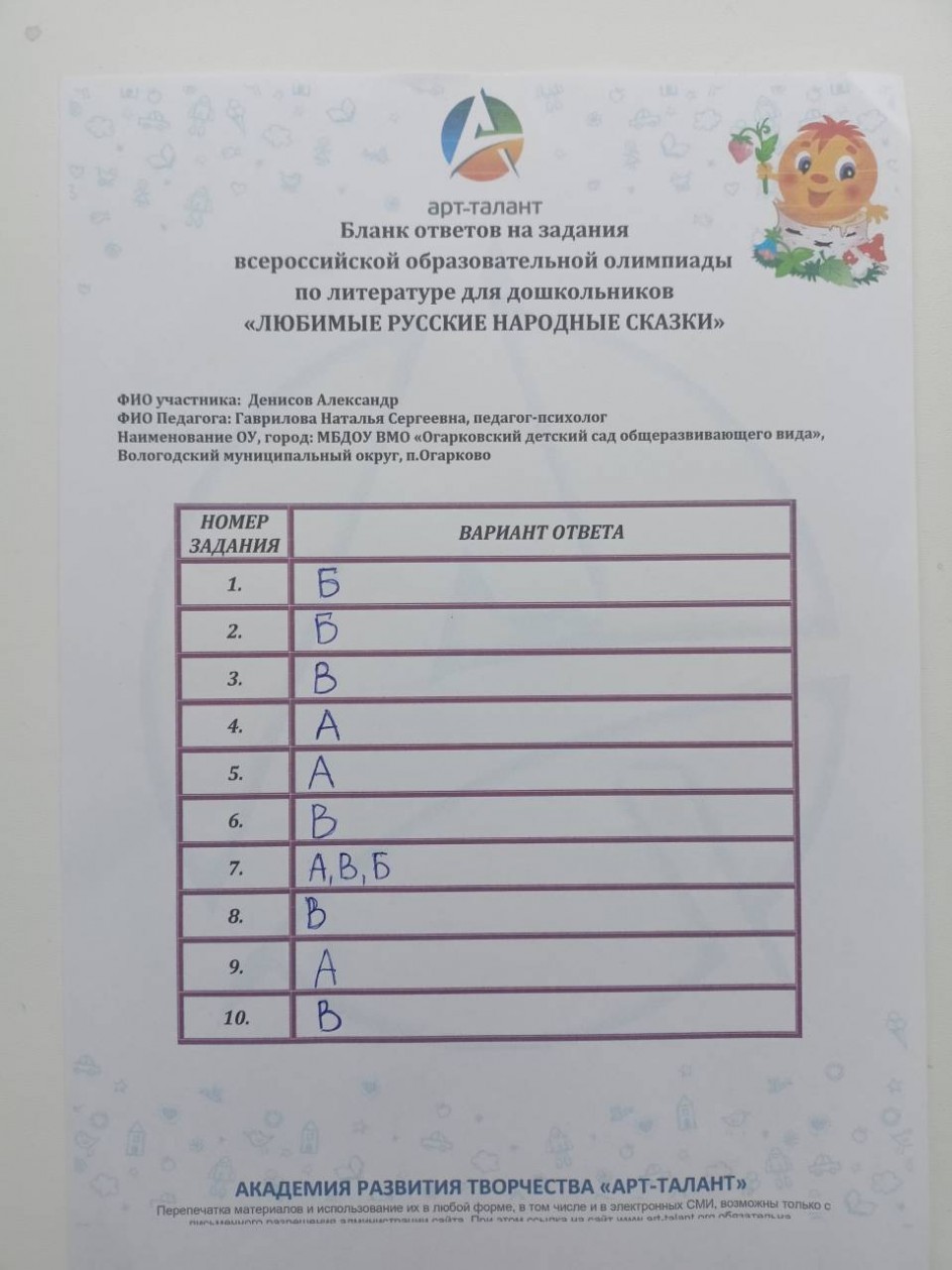 Денисов Александр, МБДОУ ВМО «Огарковский детский сад общеразвивающего вида»