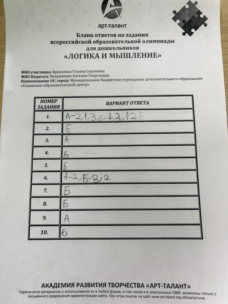 Бросалина Ульяна Сергеевна, Муниципальное бюджетное учреждение дополнительного образования «Социально-образовательный центр»