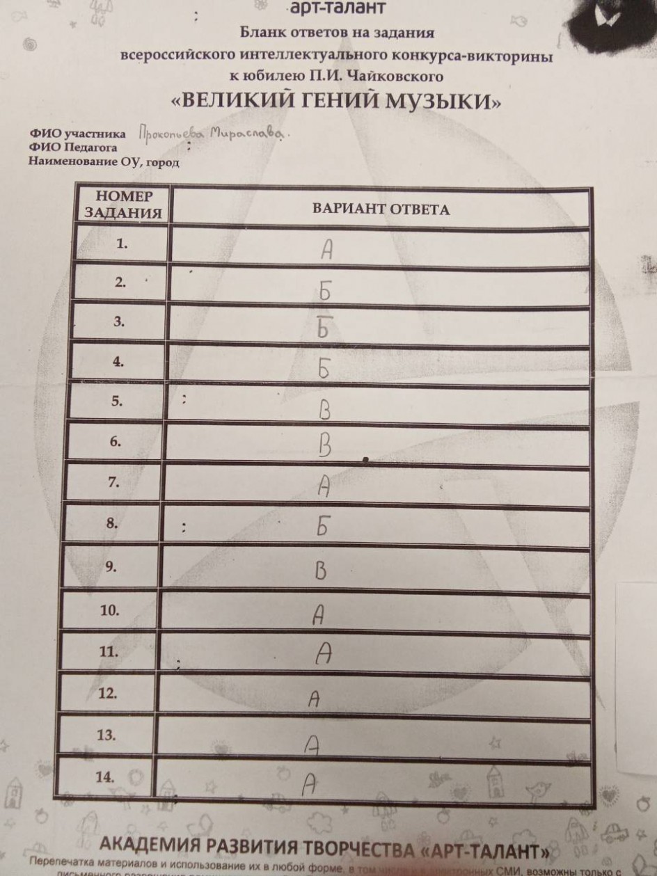 Прокопьева Мираслава, МБУ ДО "Чебоксарская детская школа искусств"