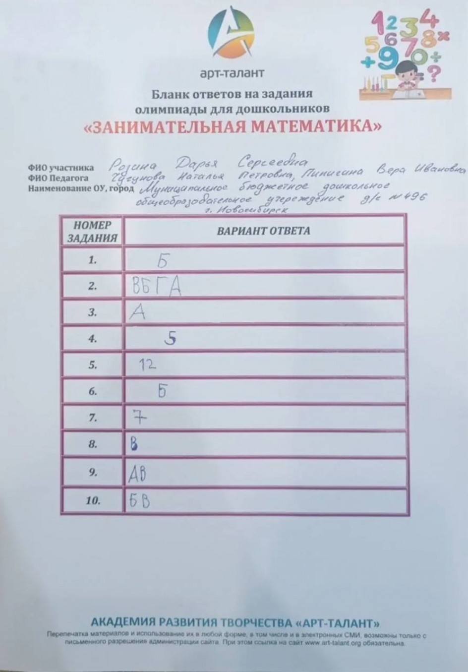Розина Дарья Сергеевна, МБДОУ д/с №496 "Золушка" г. Новосибирск