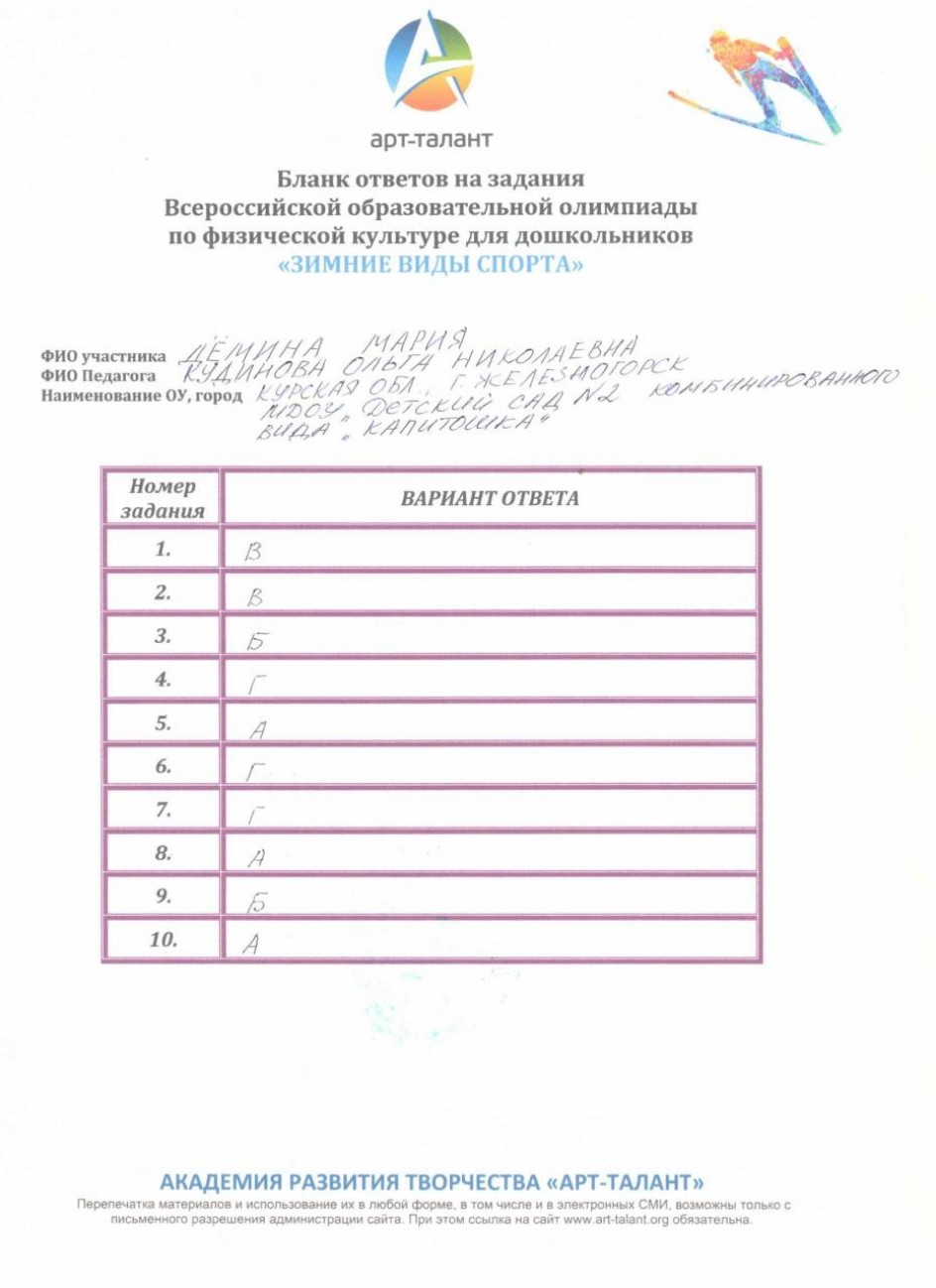 Дёмина Мария Сергеевна, МДОУ "Детский сад №2 комбинированного вида "Капитошка"