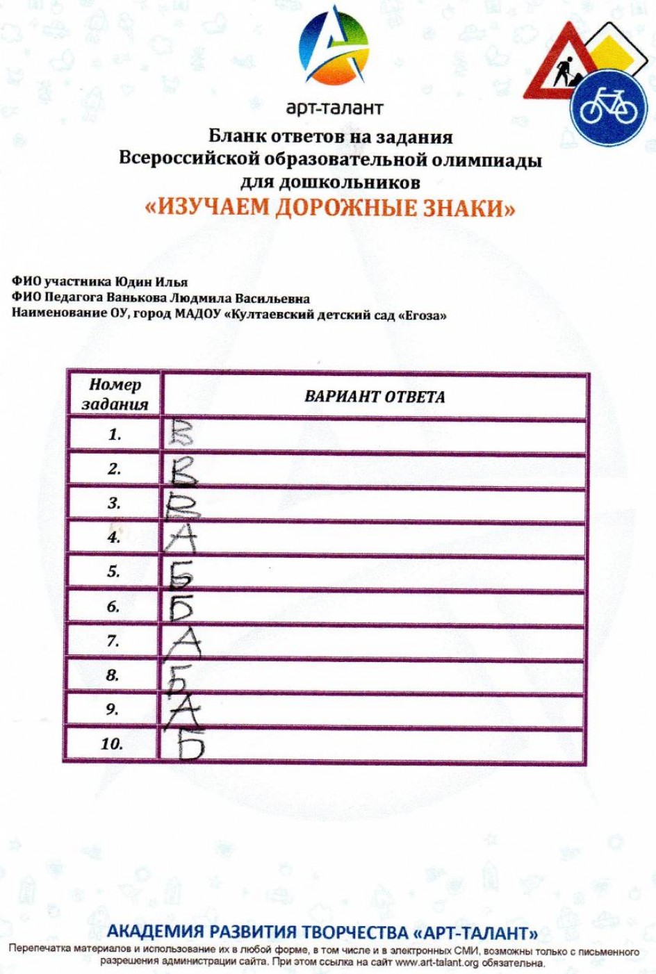Юдин Илья, МАДОУ "Култаевский детский сад "Егоза"