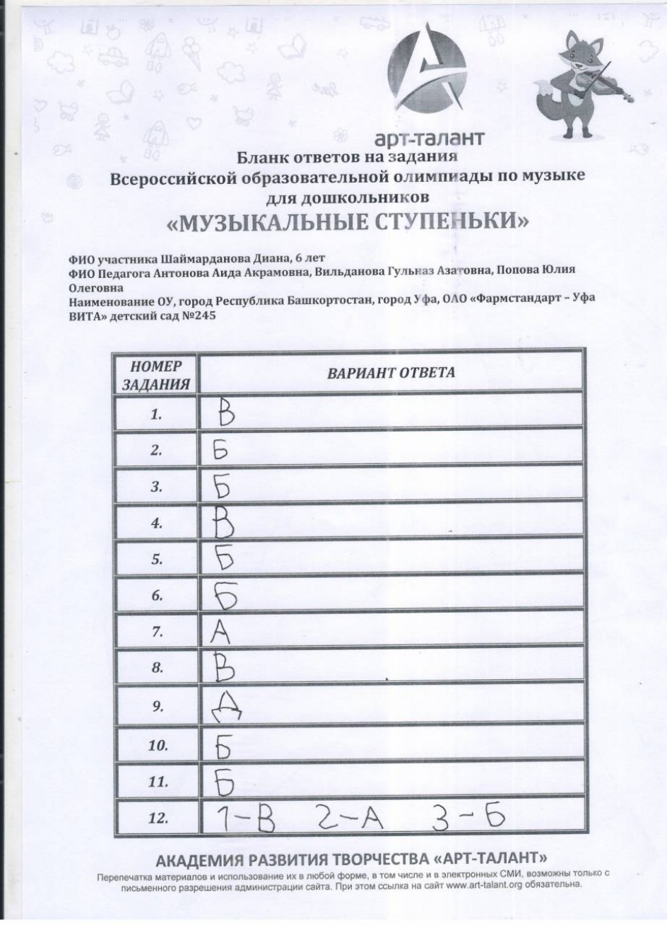 Шаймарданова Диана, 6 лет, Республика Башкортостан, город Уфа, ОАО "Фармстандарт - УфаВИТА, детский сад №245"