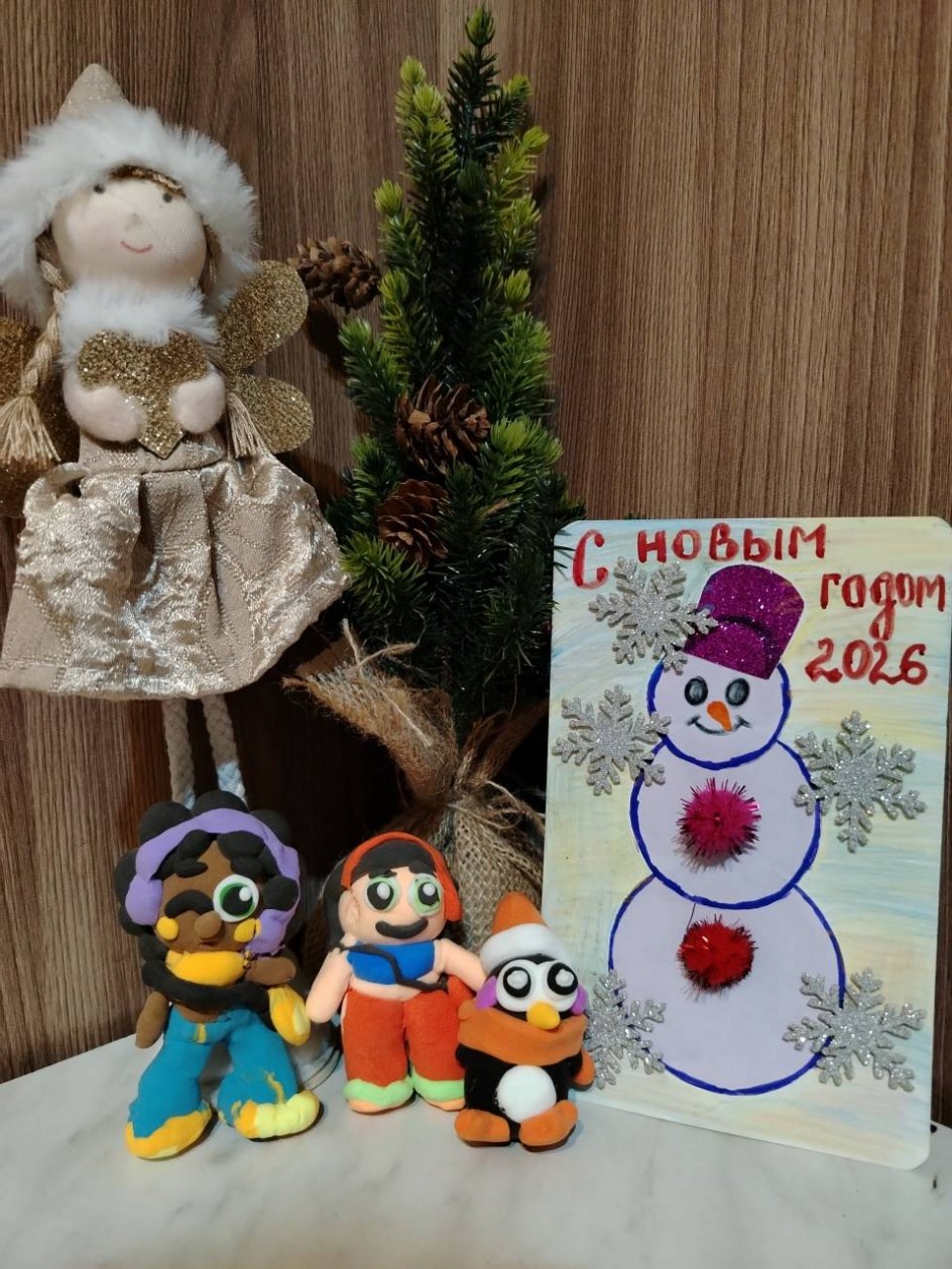Подарок для Дедушки Мороза - открытка, 2 куклы из пластилина