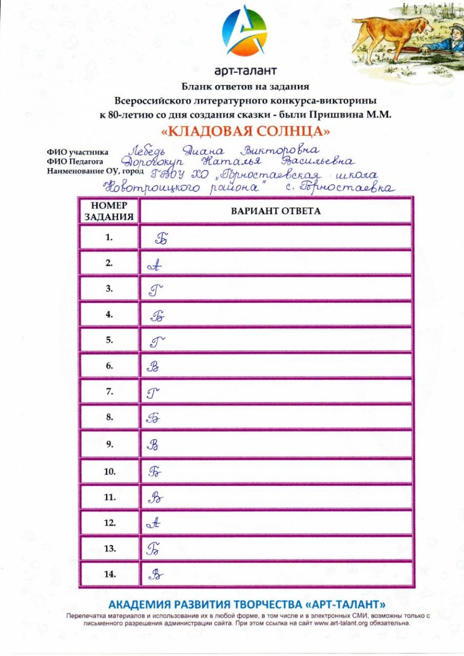 Лебедь Диана Викторовна, учитель русского языка и литературы ГБОУ ХО "Горностаевская школа Новотроицкого района"