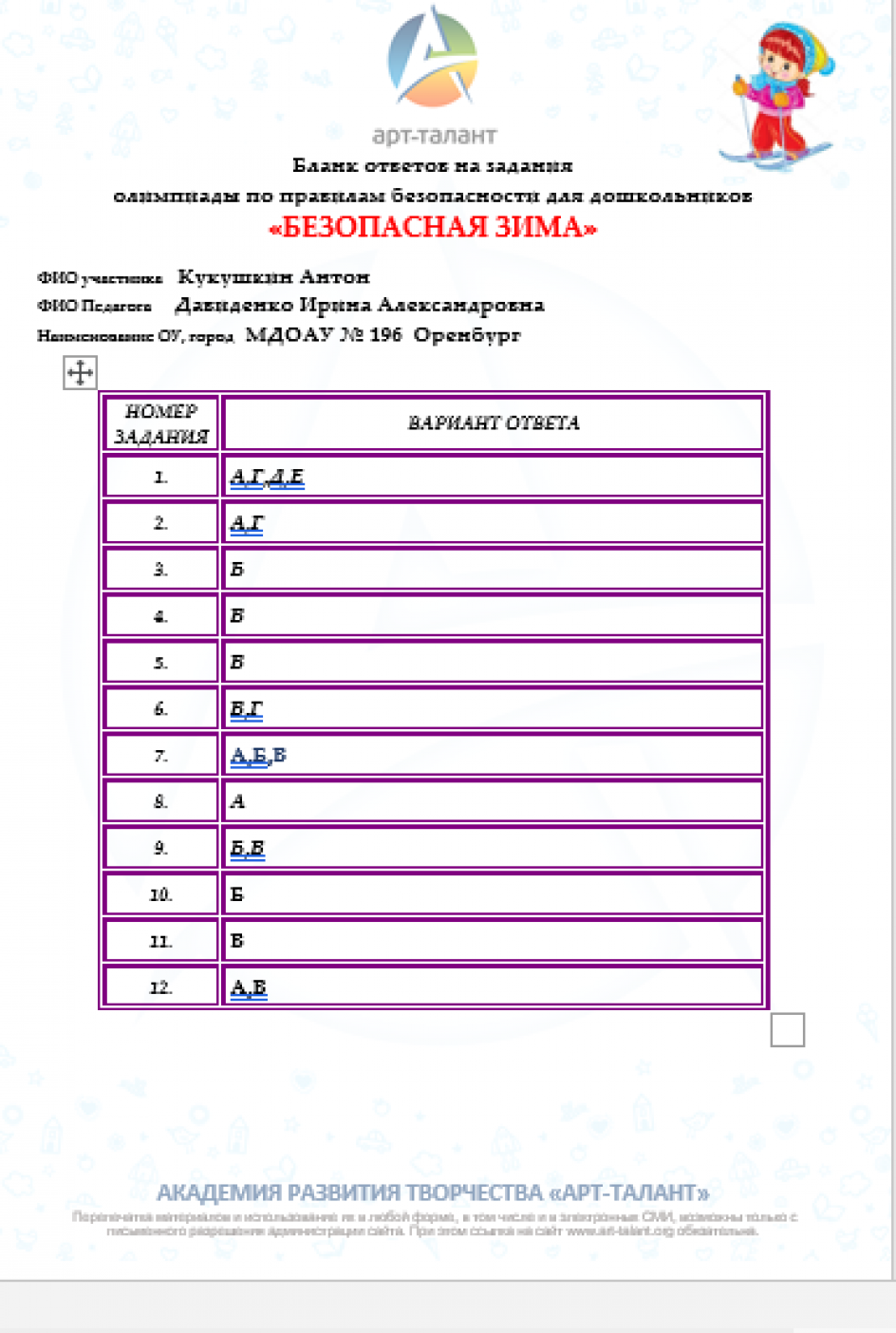 Кукушкин Антон, МДОАУ № 196 г. Оренбург