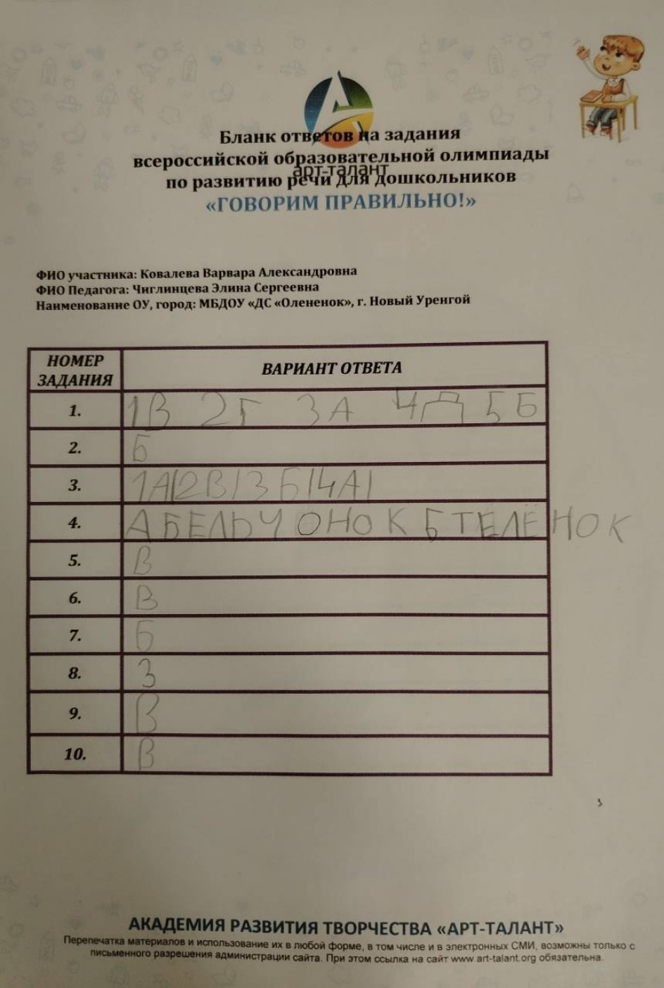 Ковалева Варвара Александровна, МБДОУ "ДС "Олененок"