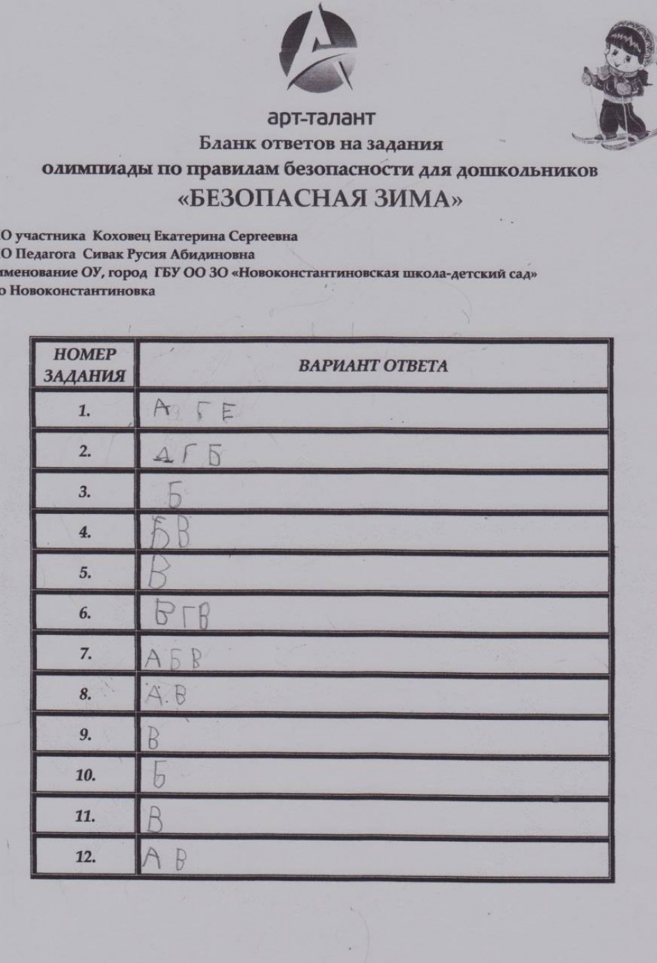 Коховец Екатерина Сергеевна, ГБУ ОО ЗО "Новоконстантиновская школа-детский сад"