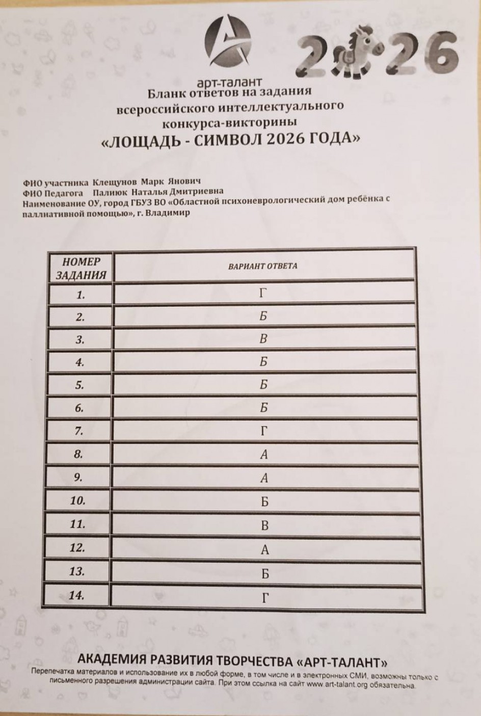 Клещунов Марк Янович, ГБУЗ ВО "Областной психоневрологический дом ребёнка с паллиативной помощью"