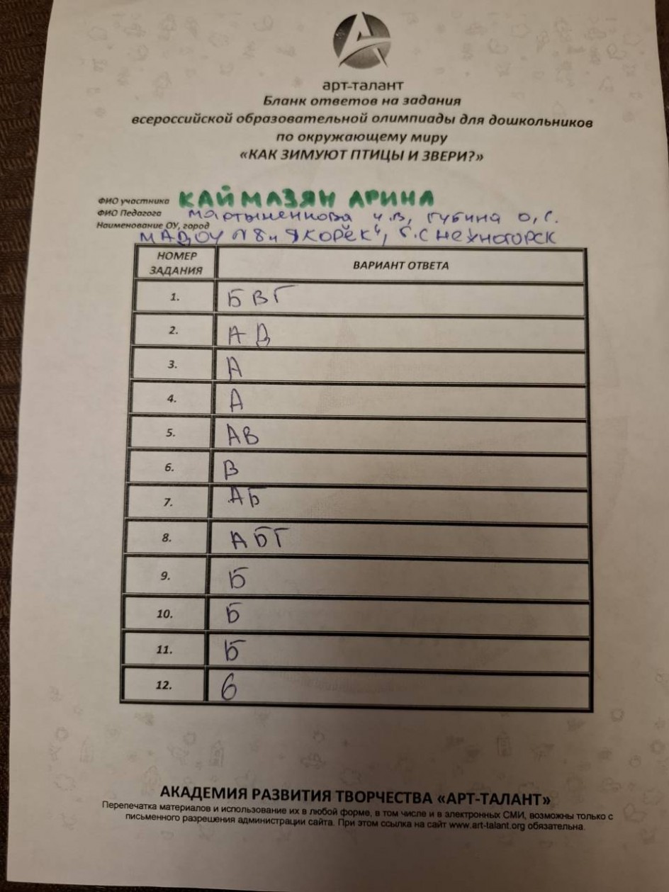 Каймазян Арина, МАДОУ №8 «Якорёк». г. Снежногорск