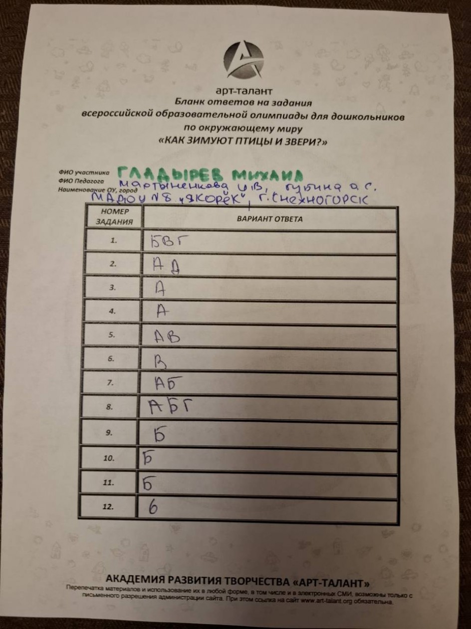 Гладырев Михаил, МАДОУ №8 «Якорёк». г. Снежногорск