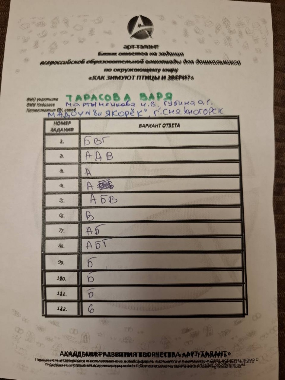 Тарасова Варвара, МАДОУ №8 «Якорёк». г. Снежногорск