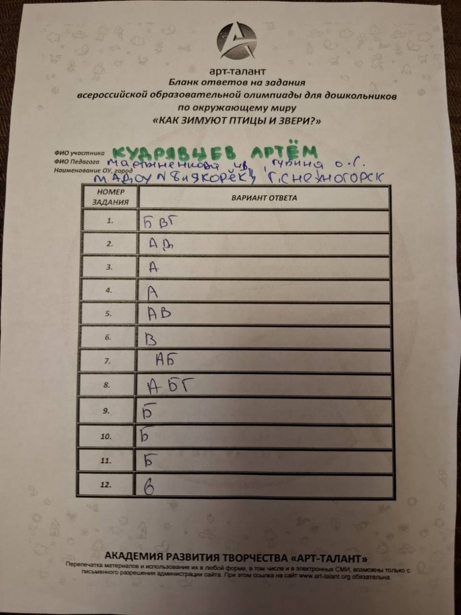 Кудрявцев Артем, МАДОУ №8 «Якорёк». г. Снежногорск