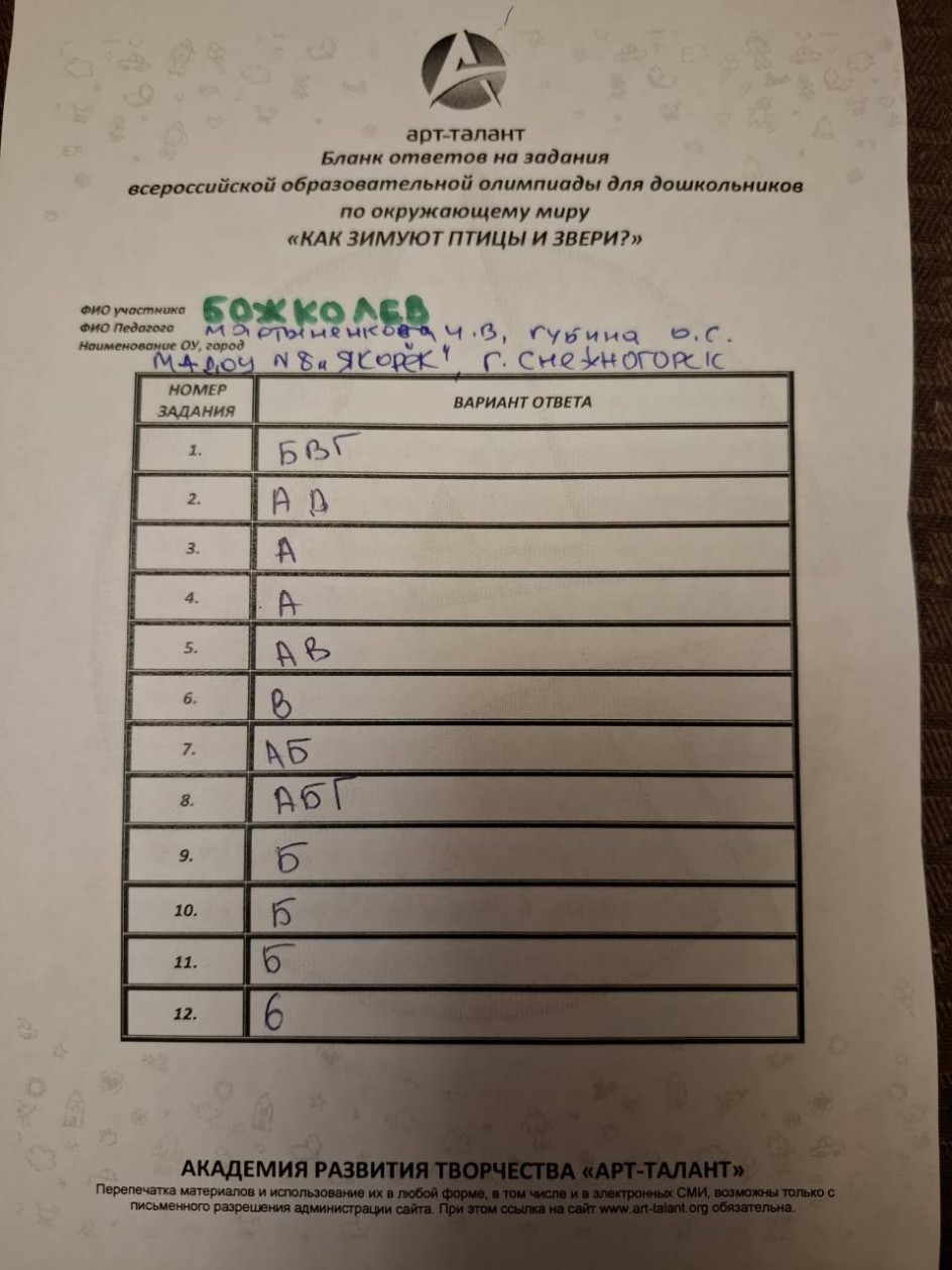 Божко Лев, МАДОУ №8 «Якорёк». г. Снежногорск
