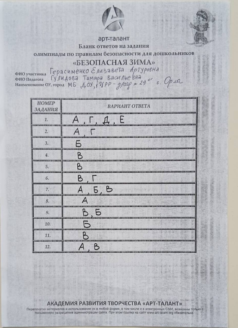 Герасименко Елизавета Артуровна, МБ ДОУ " Центр развития ребёнка- д/с N 29" г.Орла