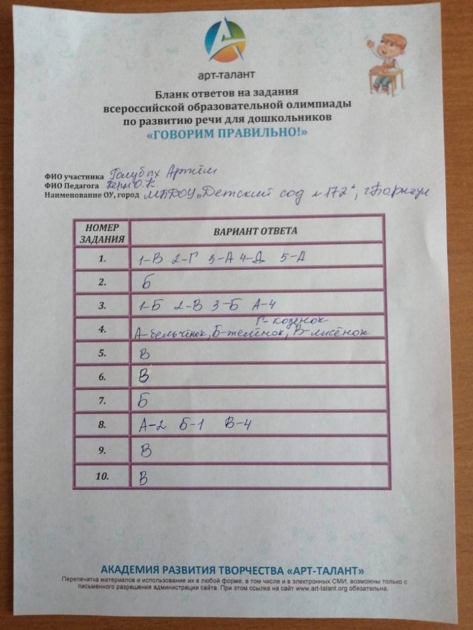 Голубых Артём, Муниципальное бюджетное дошкольное образовательное учреждение "Детский сад № 172"