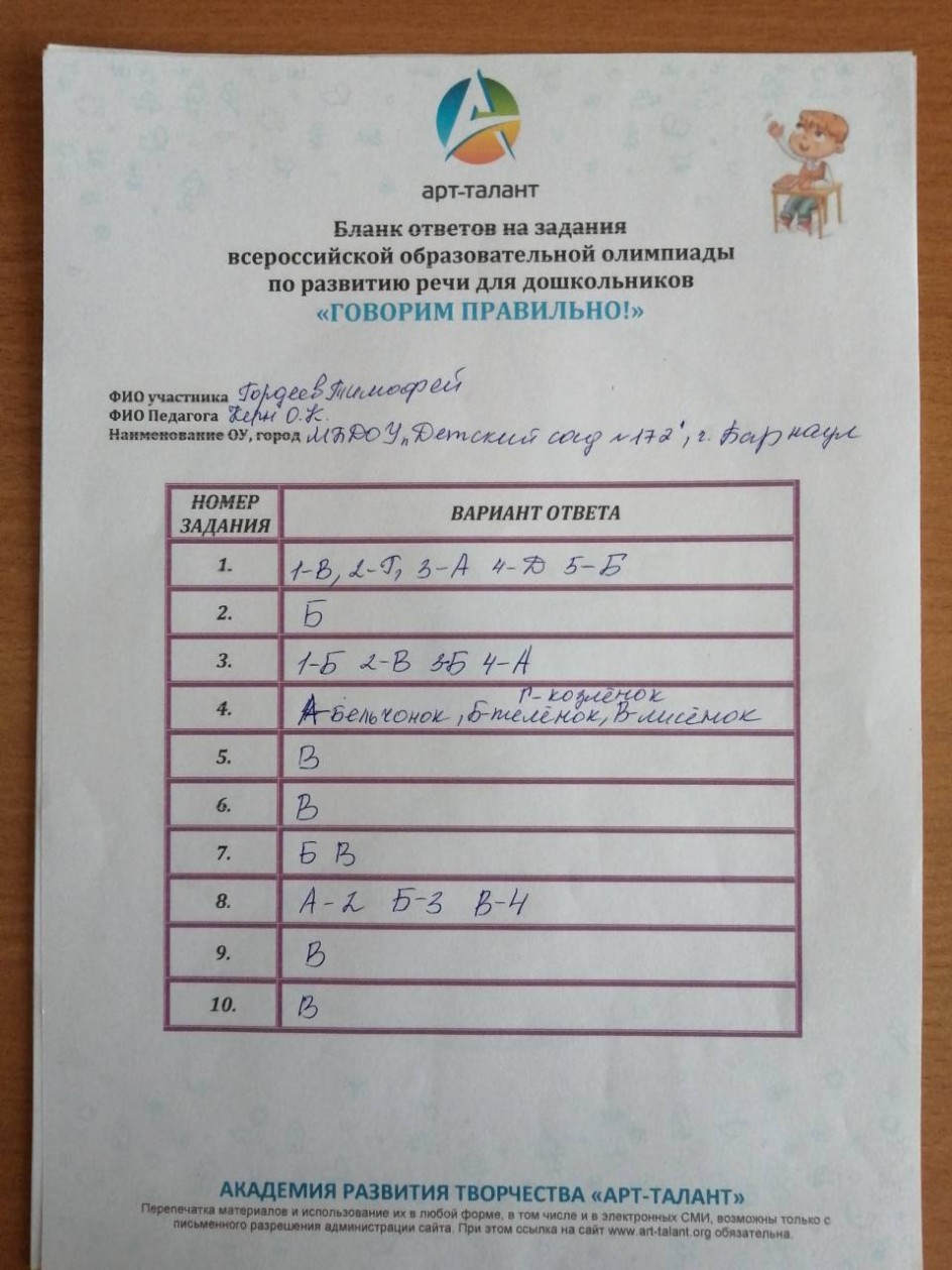 Гордеев Тимофей, Муниципальное бюджетное дошкольное образовательное учреждение "Детский сад № 172"