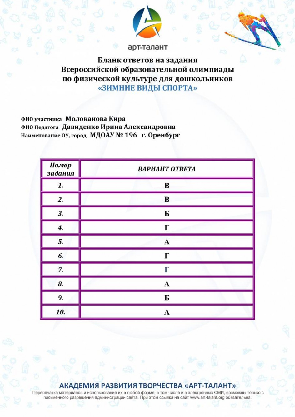 Молоканова Кира, МДОАУ № 196 г. Оренбург
