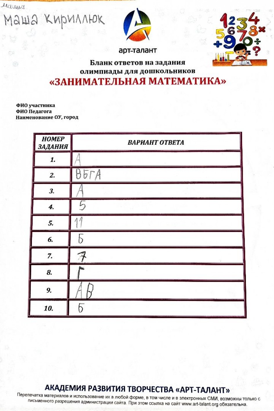 Кириллюк Мария, ONE! International school