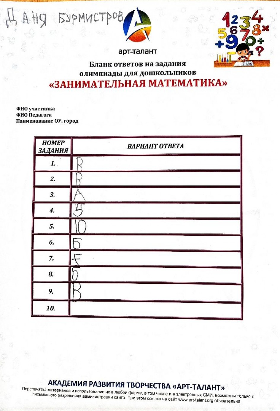 Бурмистров Даня, ONE! International school
