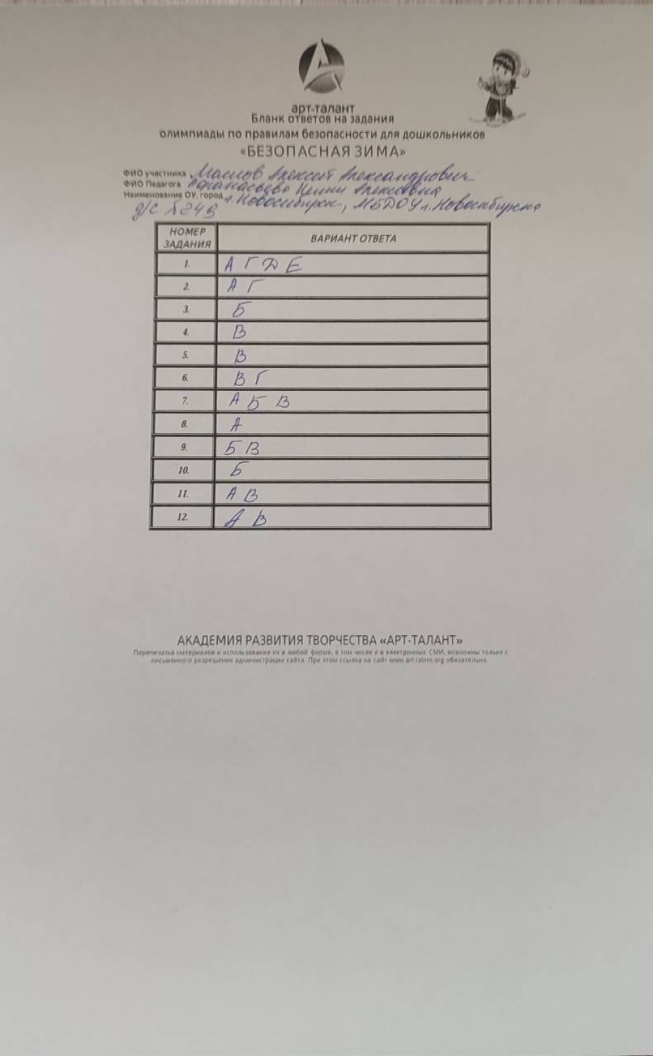 Маслов Алексей Александрович, Новосибирская область, г. Новосибирск, МБДОУ д/с 249