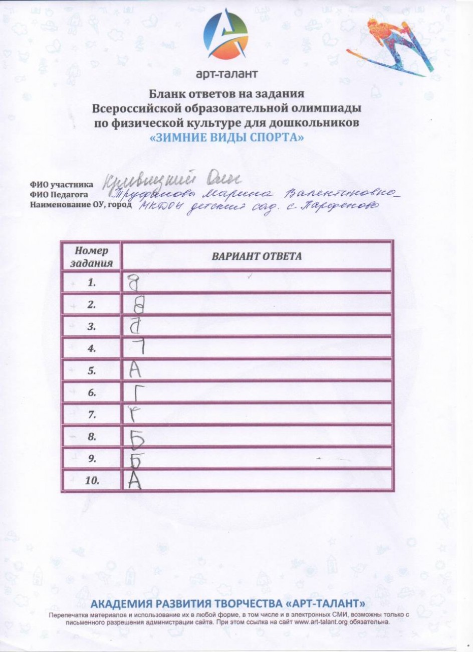 Кривицкий Олег 6 лет, Муниципальное казенное дошкольное образовательное учреждение детский сад села Парфеново
