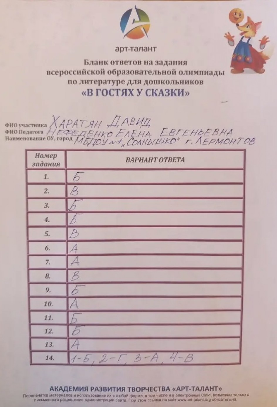 Харатян Давид, МБДОУ №1 «Солнышко» город Лермонтов Ставропольский край