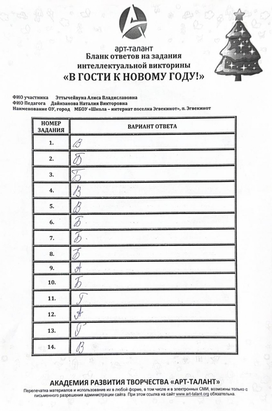 Эттычейвуна Алиса Владиславовна, МБОУ «Школа-интернат поселка Эгвекинот»