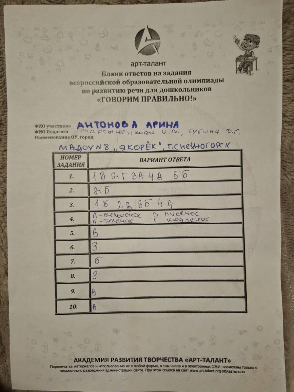 Антонова Арина, МАДОУ ДС №8 "Якорек", г. Снежногорск, Мурманской