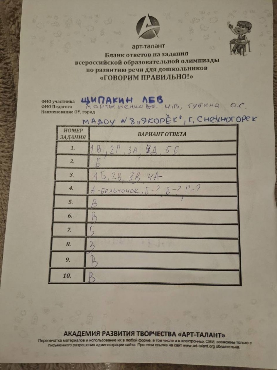 Щипакин Лев, МАДОУ ДС №8 "Якорек", г. Снежногорск, Мурманской