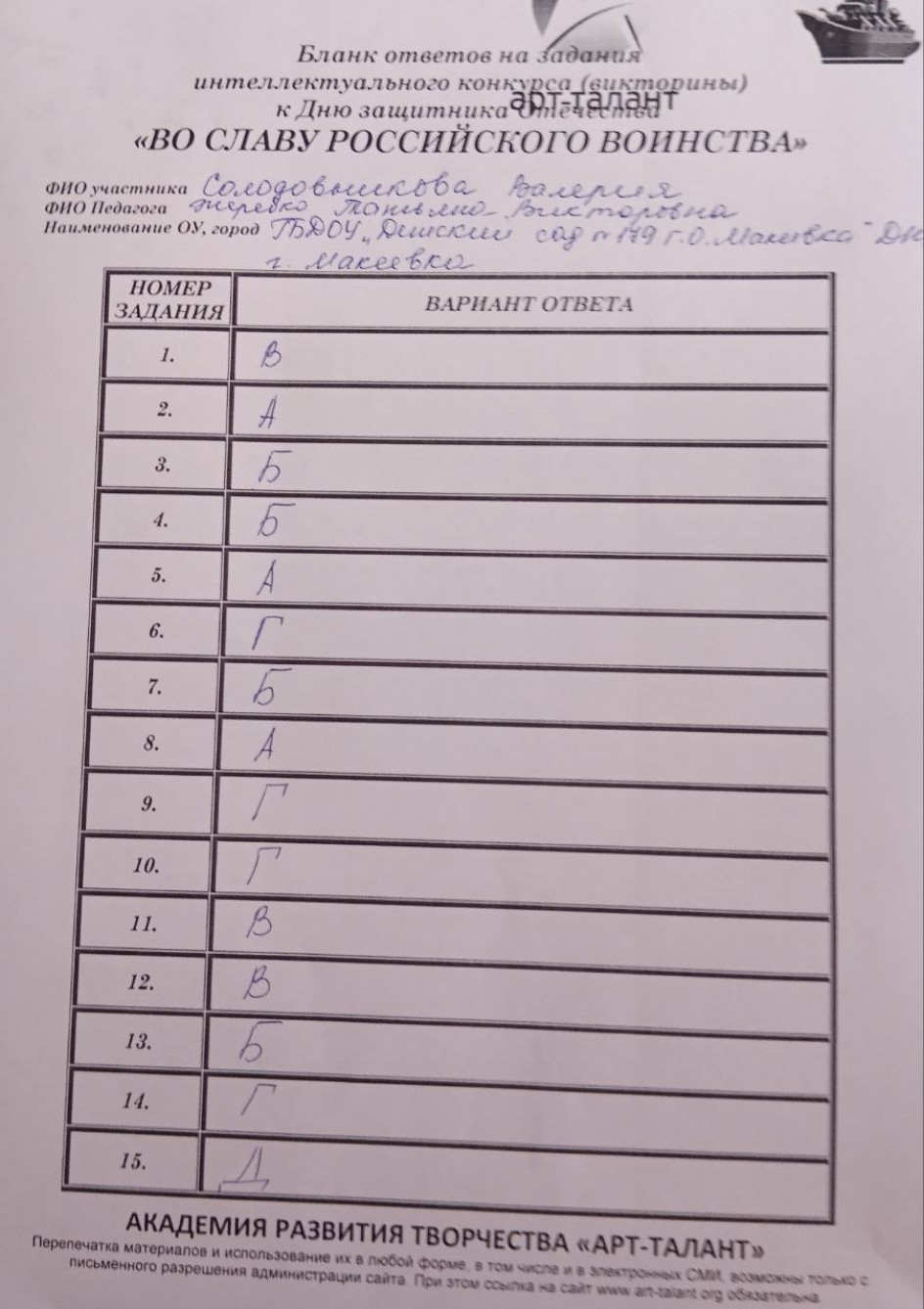Солодовникова Валерия, ГОСУДАРСТВЕННОЕ БЮДЖЕТНОЕ ДОШКОЛЬНОЕ ОБРАЗОВАТЕЛЬНОЕ УЧРЕЖДЕНИЕ«ДЕТСКИЙ САД № 179 ОБЩЕРАЗВИВАЮЩЕГО ВИДА ГОРОДСКОГО ОКРУГА МАКЕЕВКА» ДОНЕЦКОЙ НАРОДНОЙ РЕСПУБЛИКИ