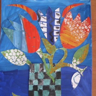 Работа выполнена в технике коллаж, на листе бумаги формата А3
