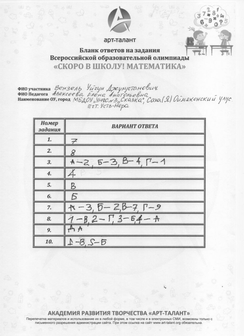 Вензель Уйгун Джулустанович, МБДОУ "УНДС Общеразвивающего вида №3 "Сказка"