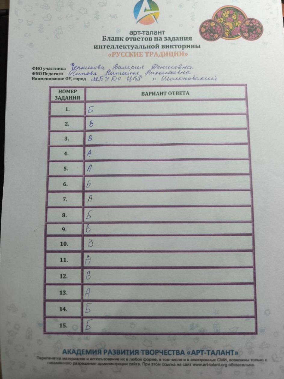 Черникова Валерия Денисовна, МБУ ДО ЦВР