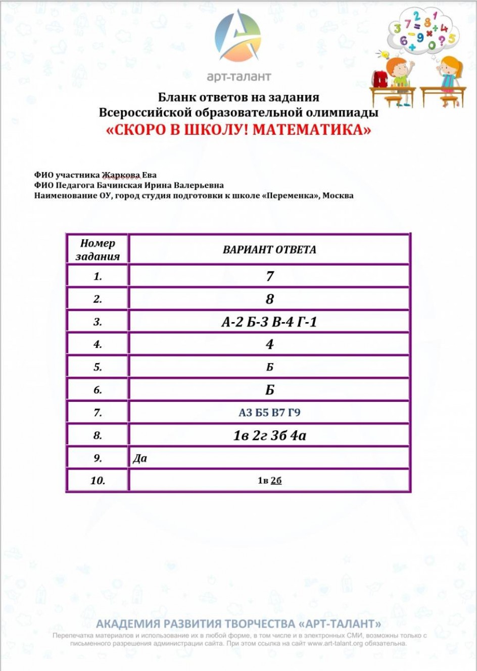 Жаркова Ева, Студия подготовки к школе "Переменка"