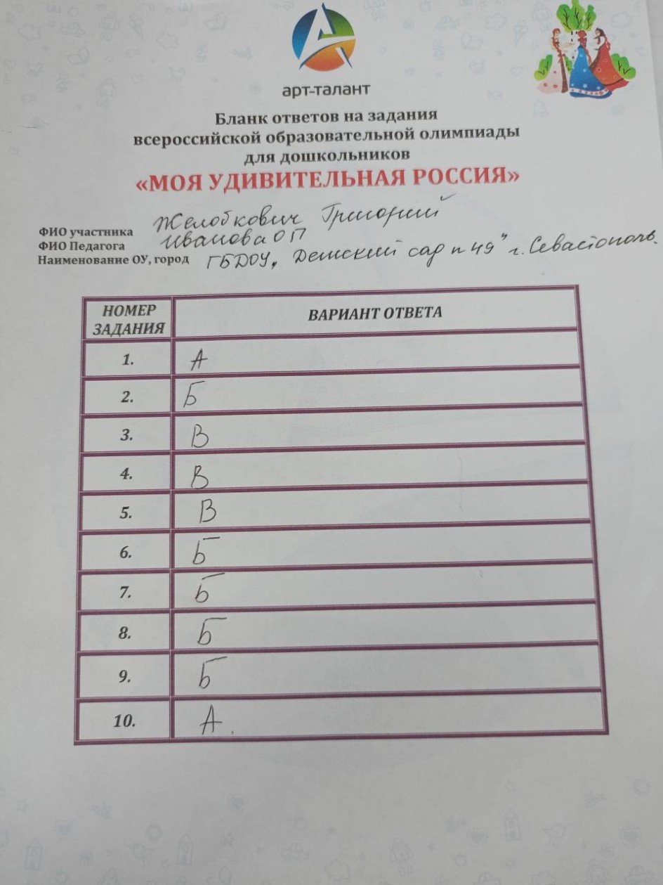 Желобкович Григорий, Г БДОУ "Детский сад 49"
