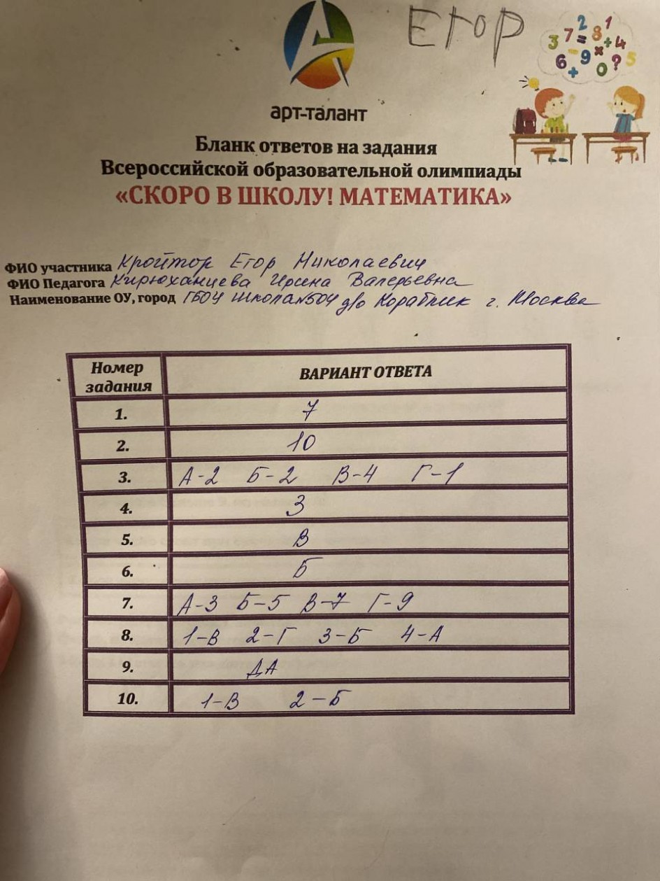 Кройтор Егор Николаевич, ГБОУ Школа 504 д/о Кораблик