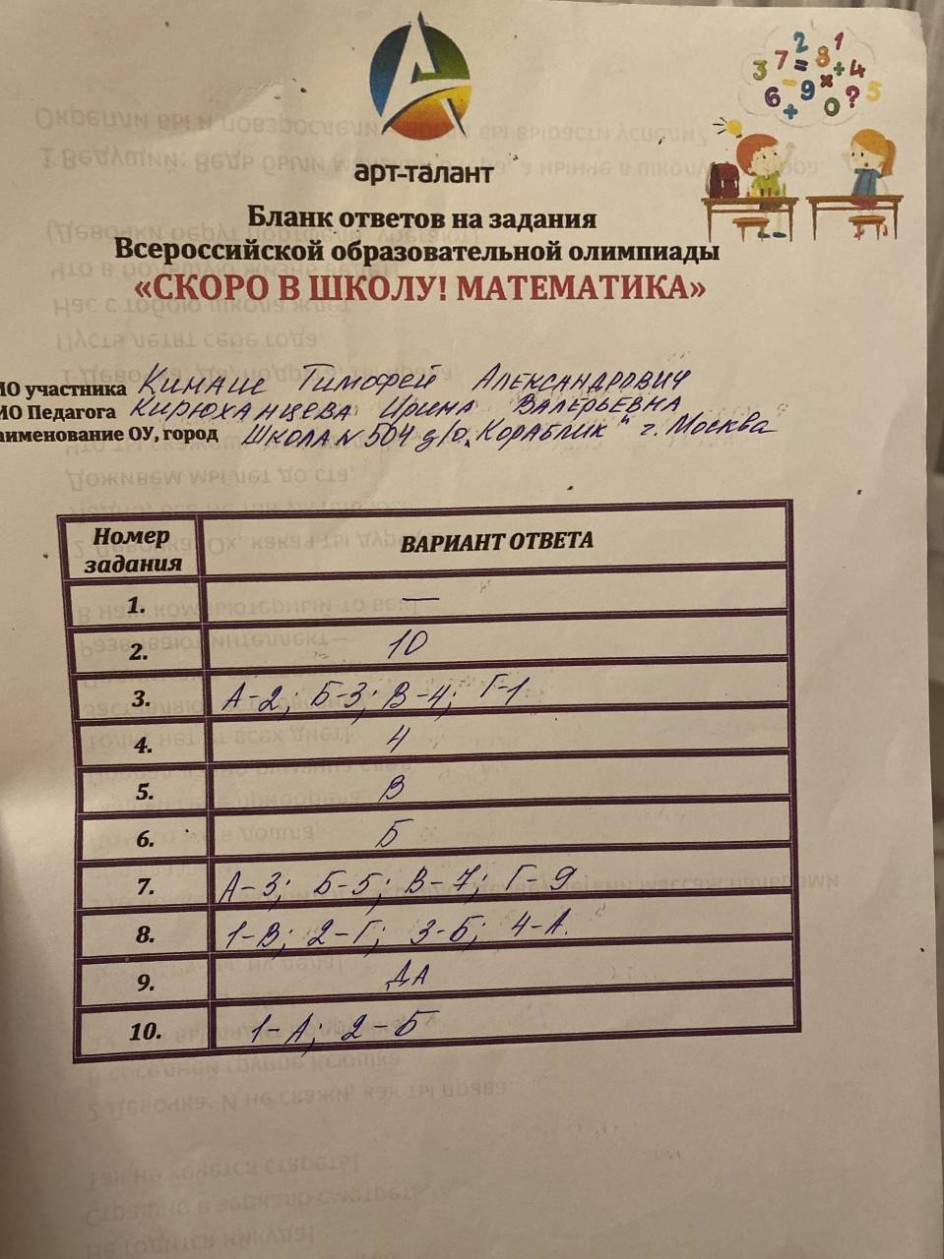 Кинаш Тимофей Александров, ГБОУ Школа 504 д/о Кораблик