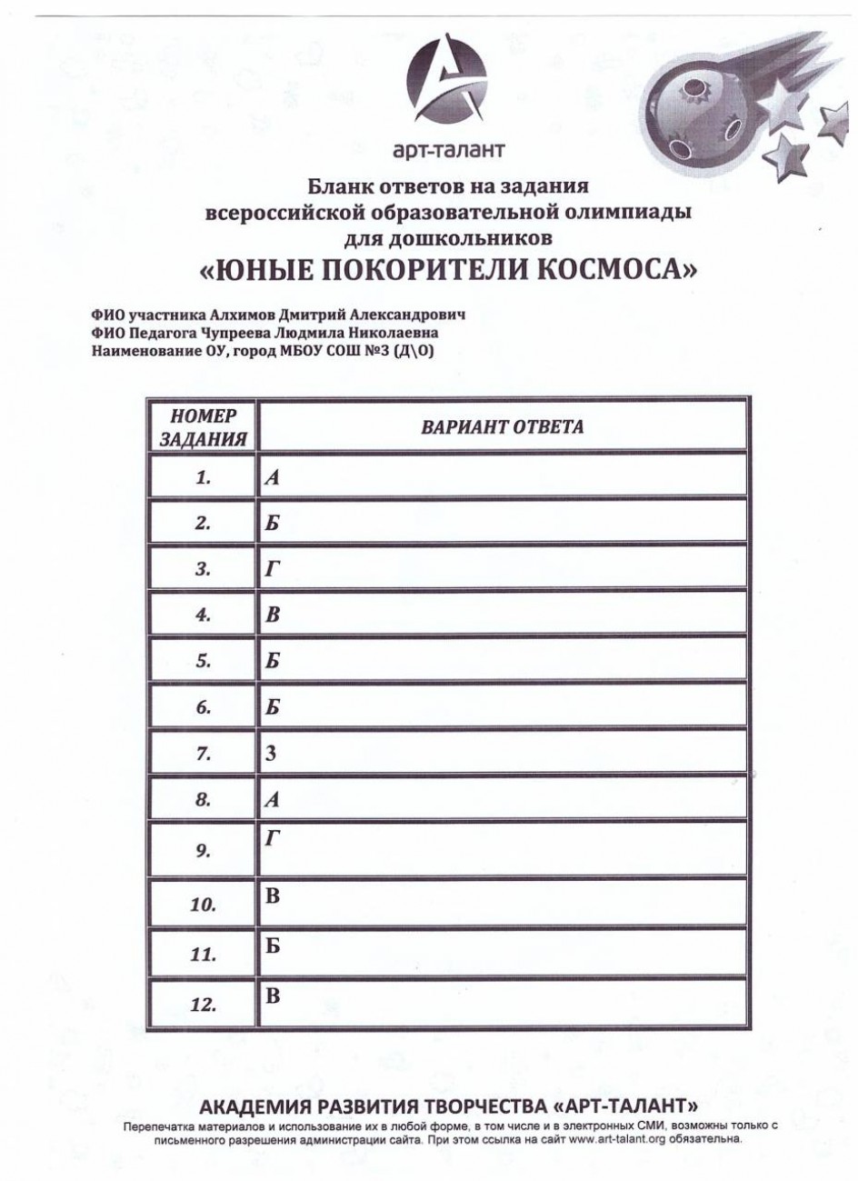 Алхимов Дмитрий Александрович, МБОУ СОШ №3 (д\о) Одинцово