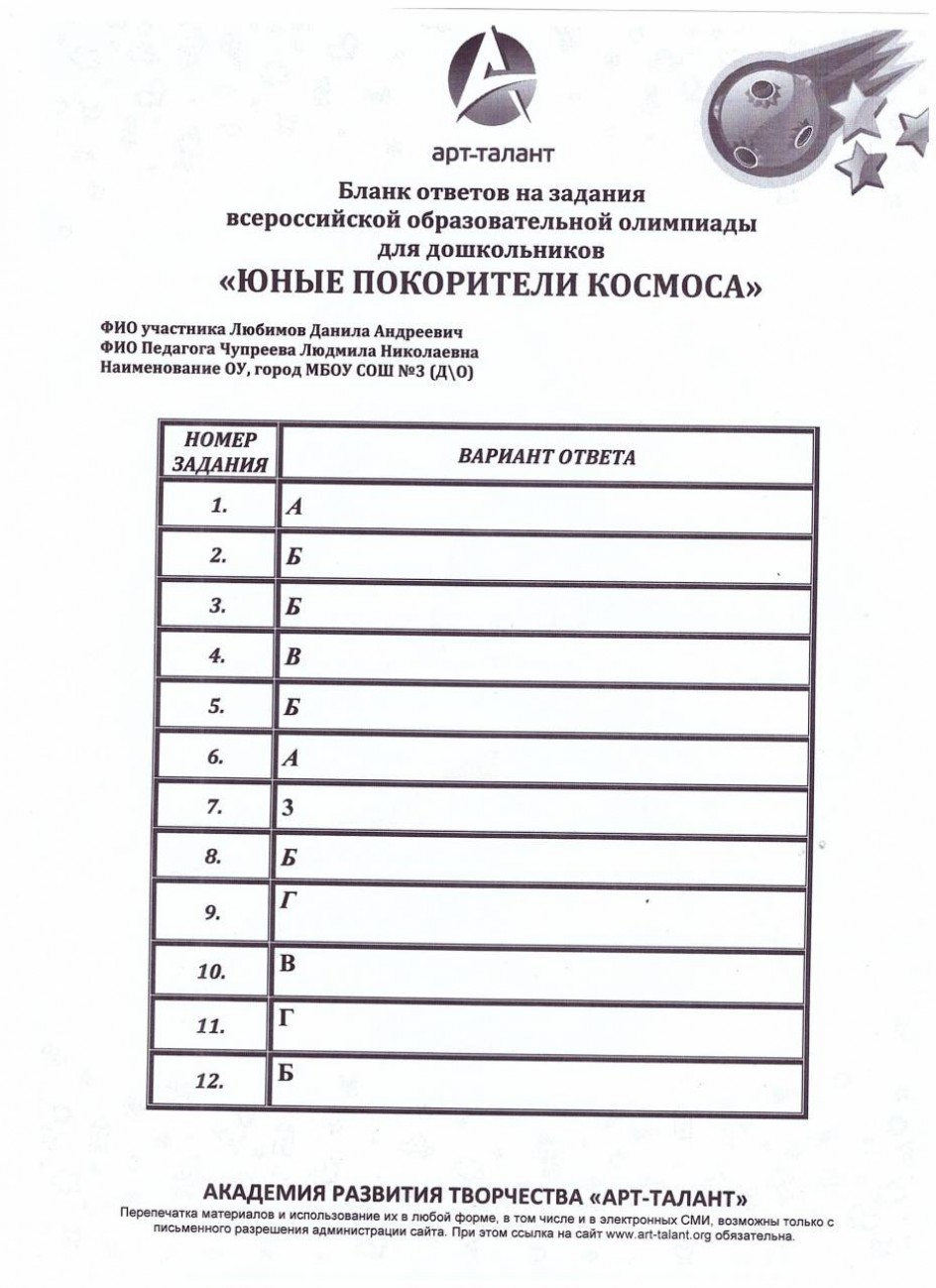 Любимов Данила Андреевич, МБОУ СОШ №3 (д\о) Одинцово