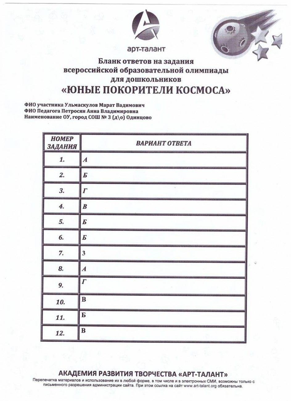 Ульмакскулов Марат Вадимович, МБОУ СОШ №3 (д\о) Одинцово