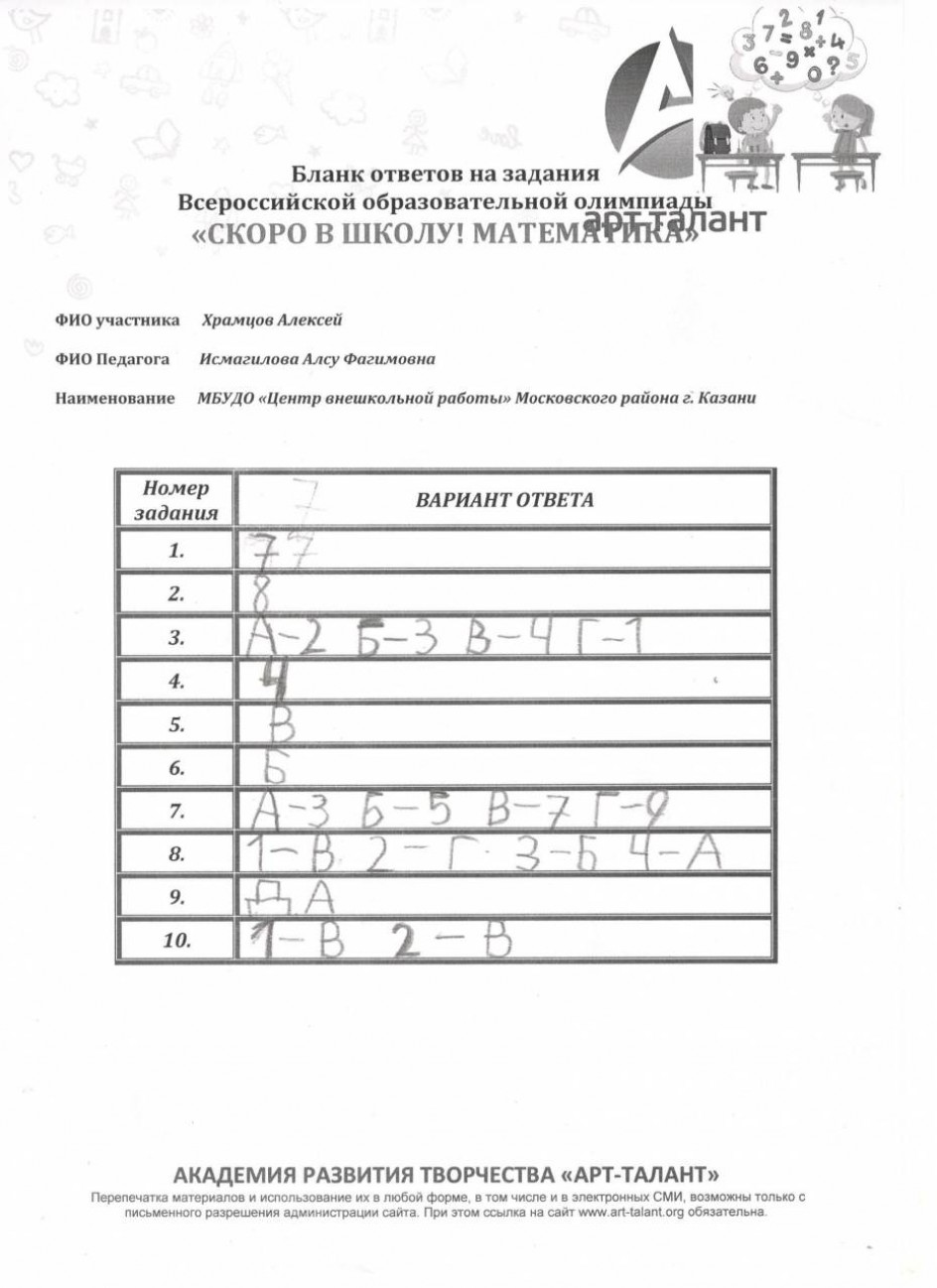 Храмцов Алексей, Муниципальное бюджетное учреждение дополнительного образования "Центр внешкольной работы" Московского района г. Казани