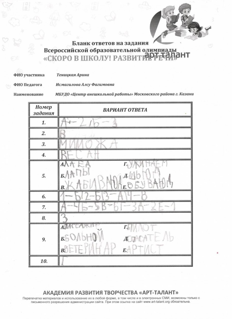 Теницкая Арина, Муниципальное бюджетное учреждение дополнительного образования "Центр внешкольной работы" Московского района г. Казани