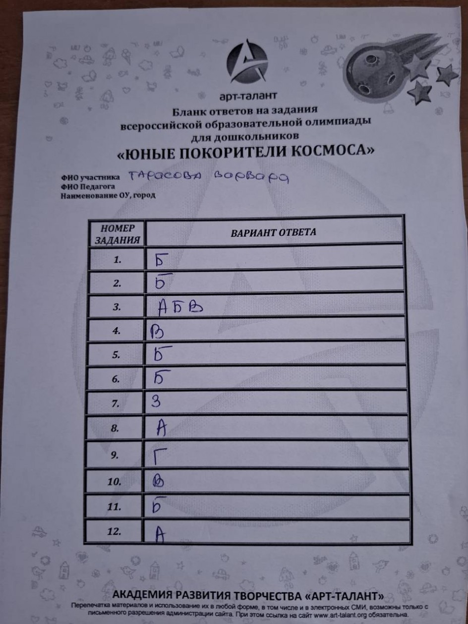 Тарасова Варвара, МАДОУ ДС №8 "Якорек"