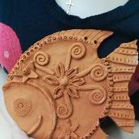Подвеска для интерьера из природной глины, обожжена в муфельной печи и декорирована акриловыми красками.