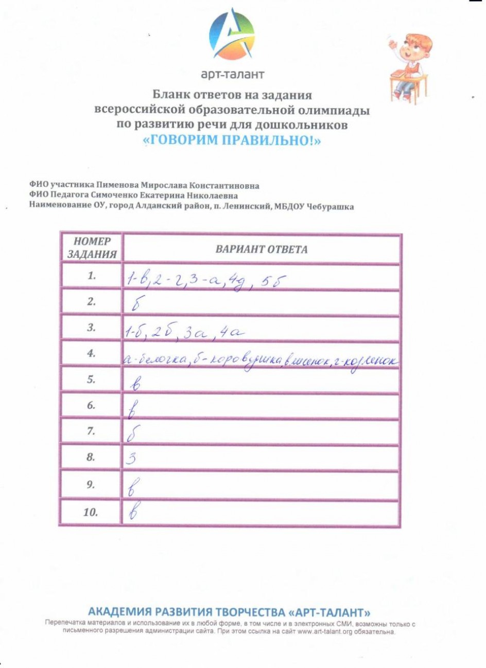 Пименова Мирослава Константиновна, МБДОУ "Чебурашка"