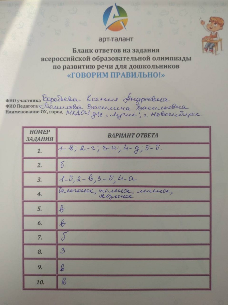 Воробьева Ксения Андреевна, МКДОУ Д/С "ЛУЧИК"