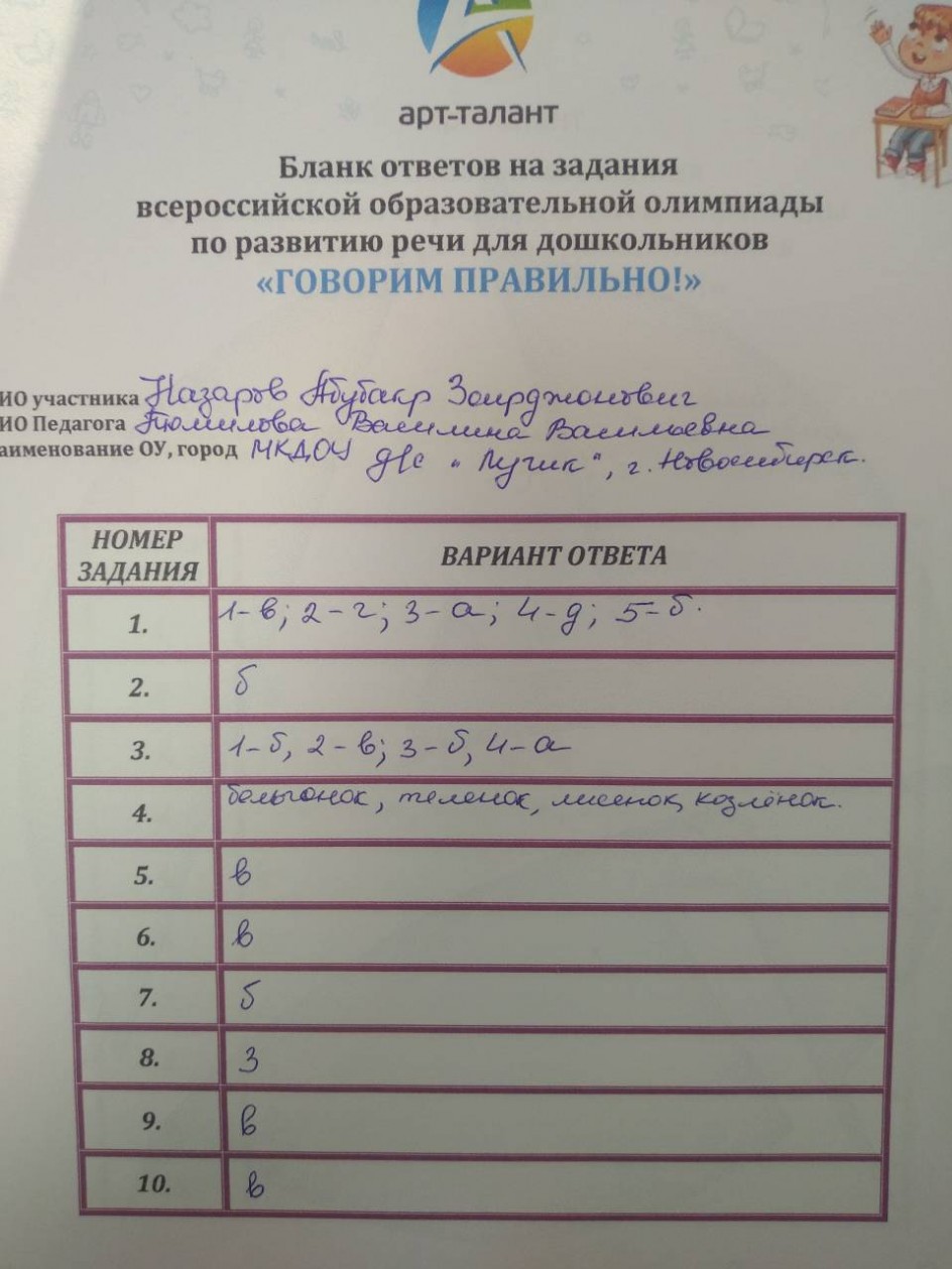 Назаров Абубакр Зорджонович, МКДОУ Д/С "ЛУЧИК"